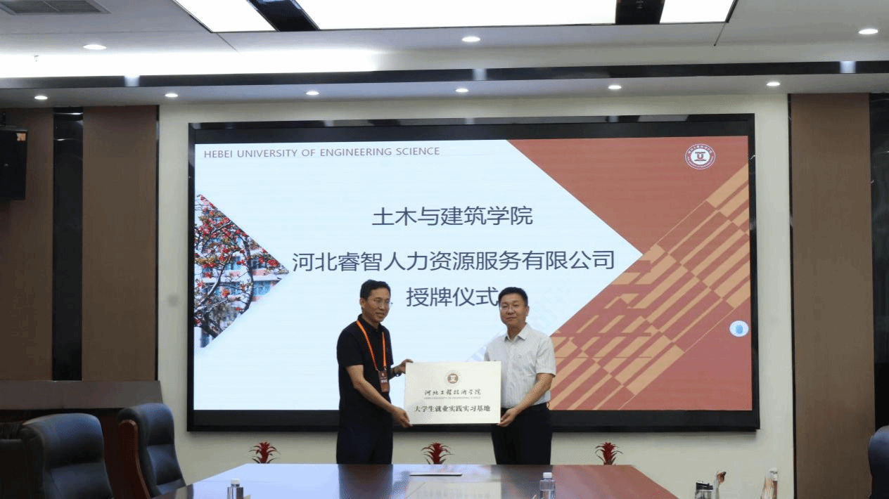 2025年5月21日上午10时,土木与建筑学院大学生就业实践实习基地授牌仪式在会议中心第三会议室隆重举行。副校长刘喜贵,学生工作处处长连婷,学院党总支书记兼学管副院长王亚杰,学院教学副院长李晶、李伟娜,与河北美筑节能科技有限公司、河北睿智人力资源服务有限公司、华腾鸿业项目管理有限公司等六家企业的代表齐聚一堂,共同见证校企合作新篇章的开启。